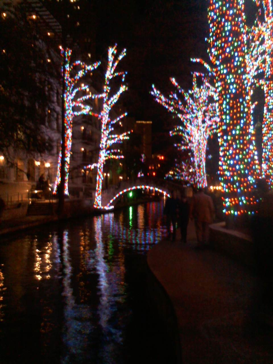 The river walk at night, while the Christmas lights are up. It feels like a waking dream, I could just stroll around there for forever and listen to the music of people talking and random instruments playing.
